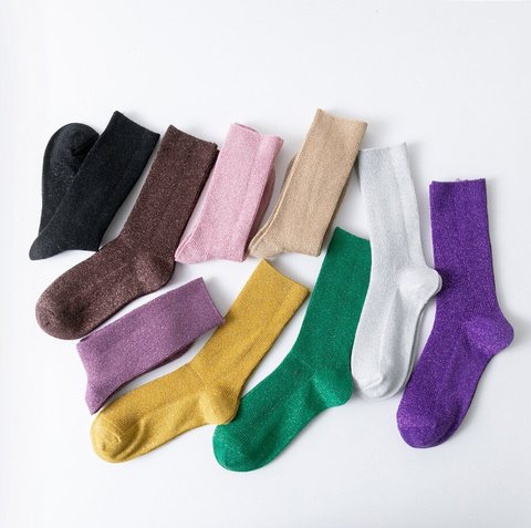 Moda estilo senhoras glitter meias múltiplas cores sólidas algodão meias confortáveis